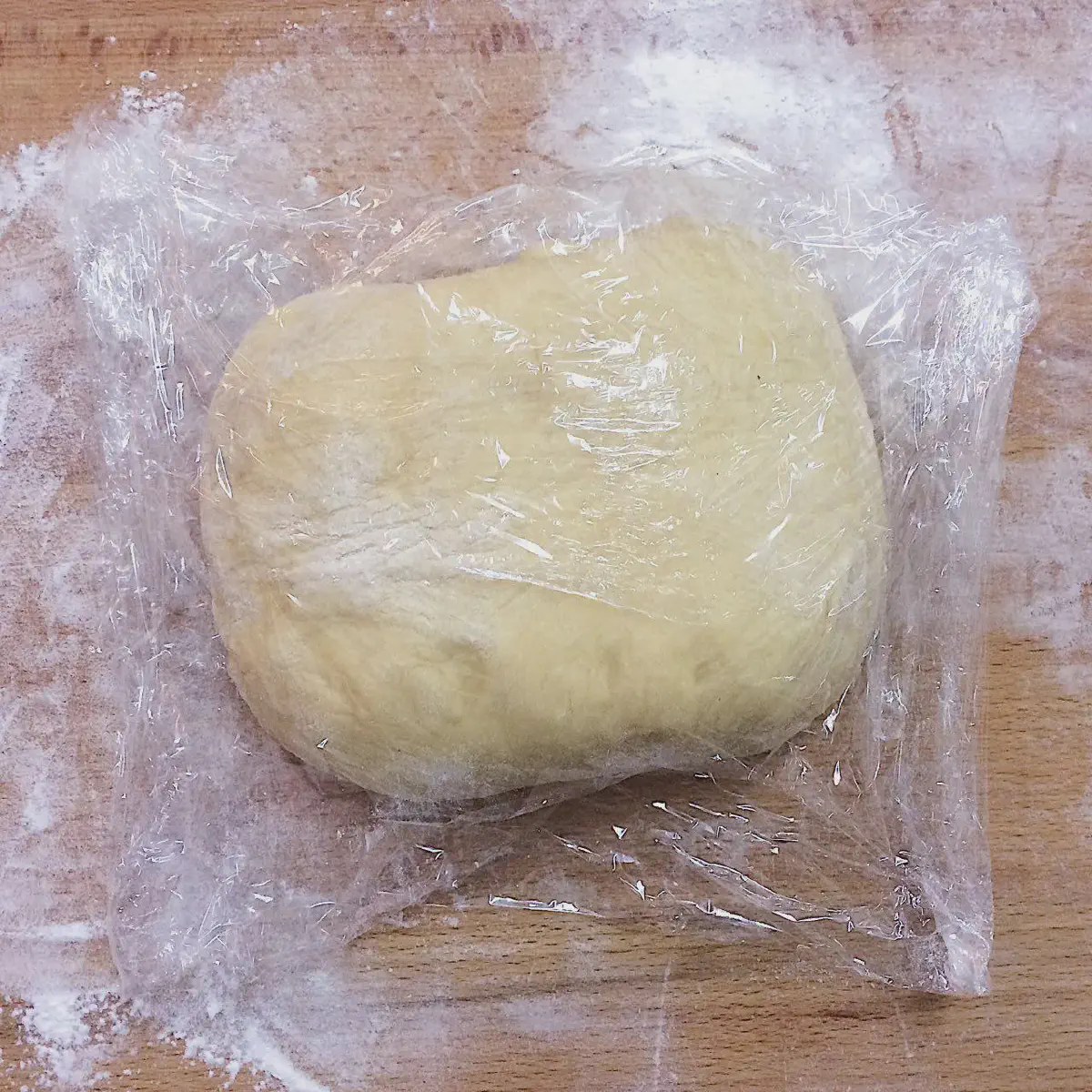 Раскатываем скалкой в прямоугольник, и складываем в квадрат, по ходу дела стряхивая излишек муки: