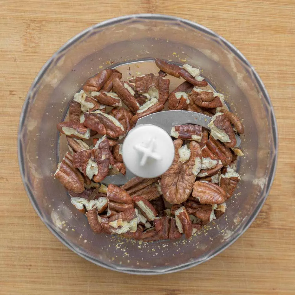 Обжарим пеканы (60 гр.) до появления аромата, и оставим остывать.