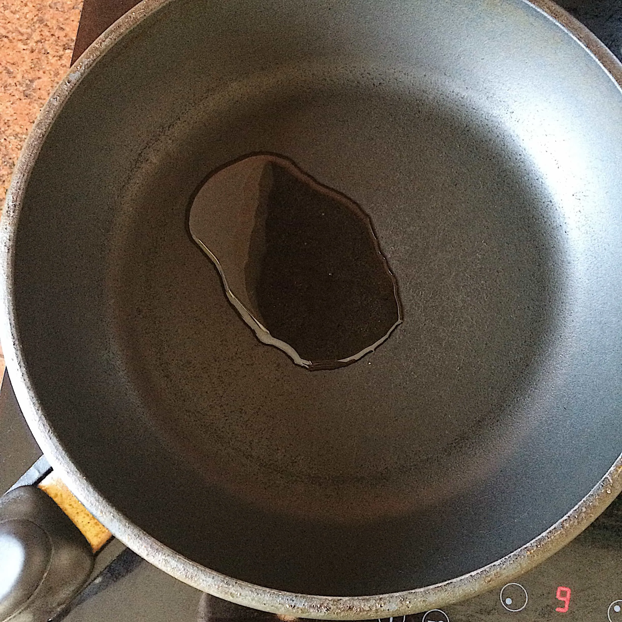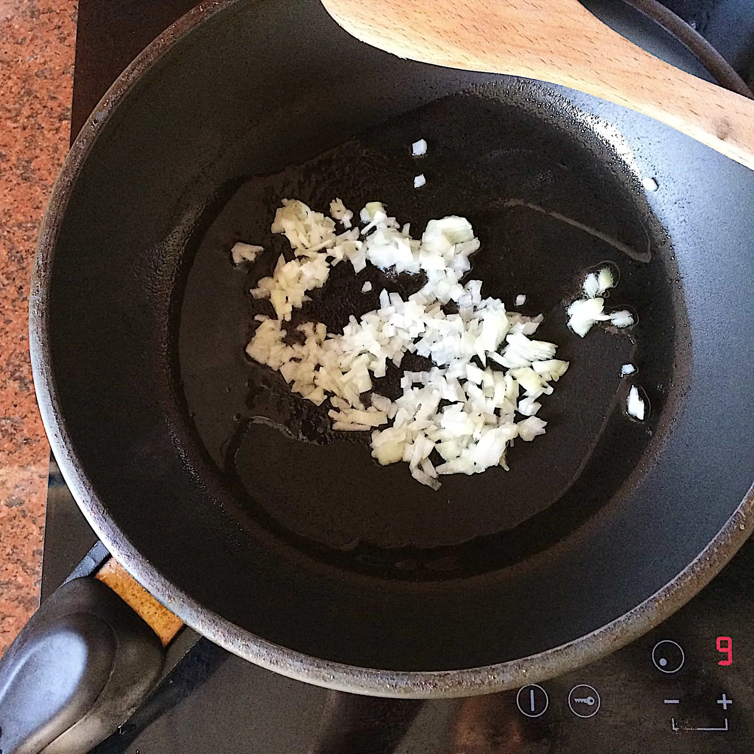 Разогреваем сковороду, добавляем растительное масло (1 ст.л.), и лук. Обжариваем на большом огне до появления аромата.