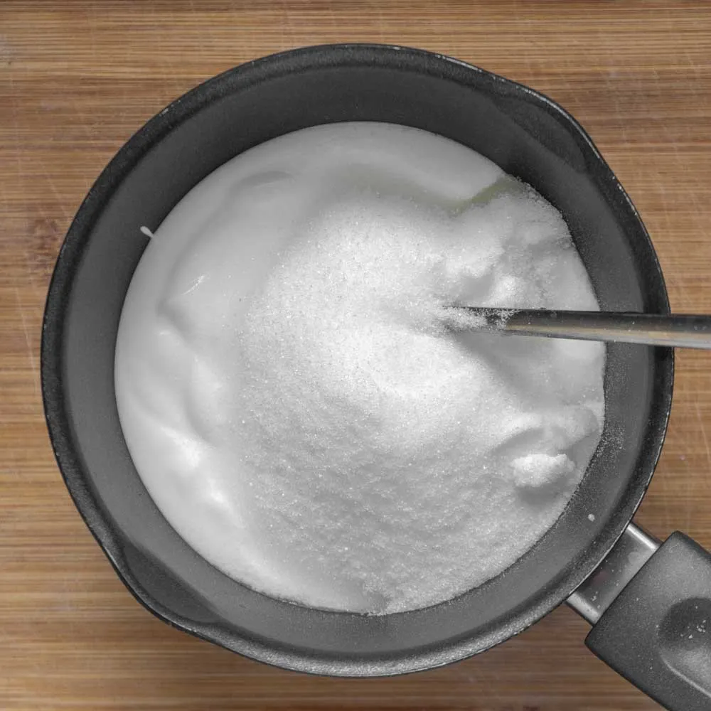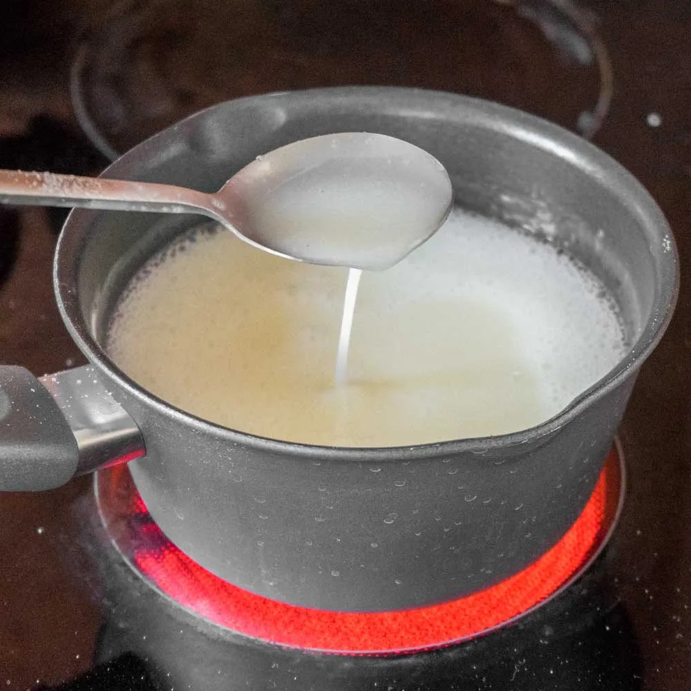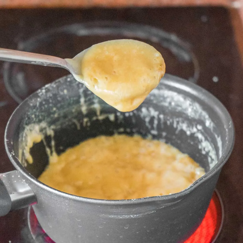 Соединяем все ингредиенты в одном ковшичке/сотейнике/сковородке, доводим на быстром огне до кипения. Постоянно помешиваем. Смесь будет хорошо пениться, так что надо оставить сантиметров 5-7 от края.