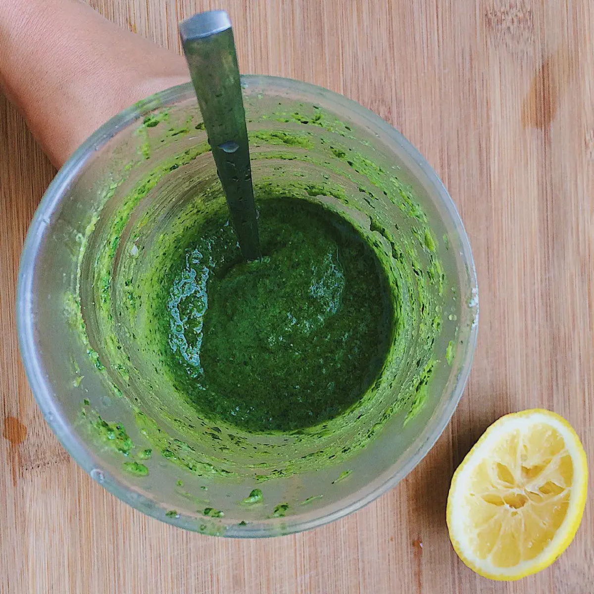 Здесь мы пробуем только на соленость и кислоту — если базилик долго хранился в холодильнике, то сразу после смешивания соус может показаться «ни о чем» — тусклый, пресный, да и вообще за что его так любят… Собственно, у меня была ровно такая же реакция… но на следующий день он превратился в нечто великолепное…
