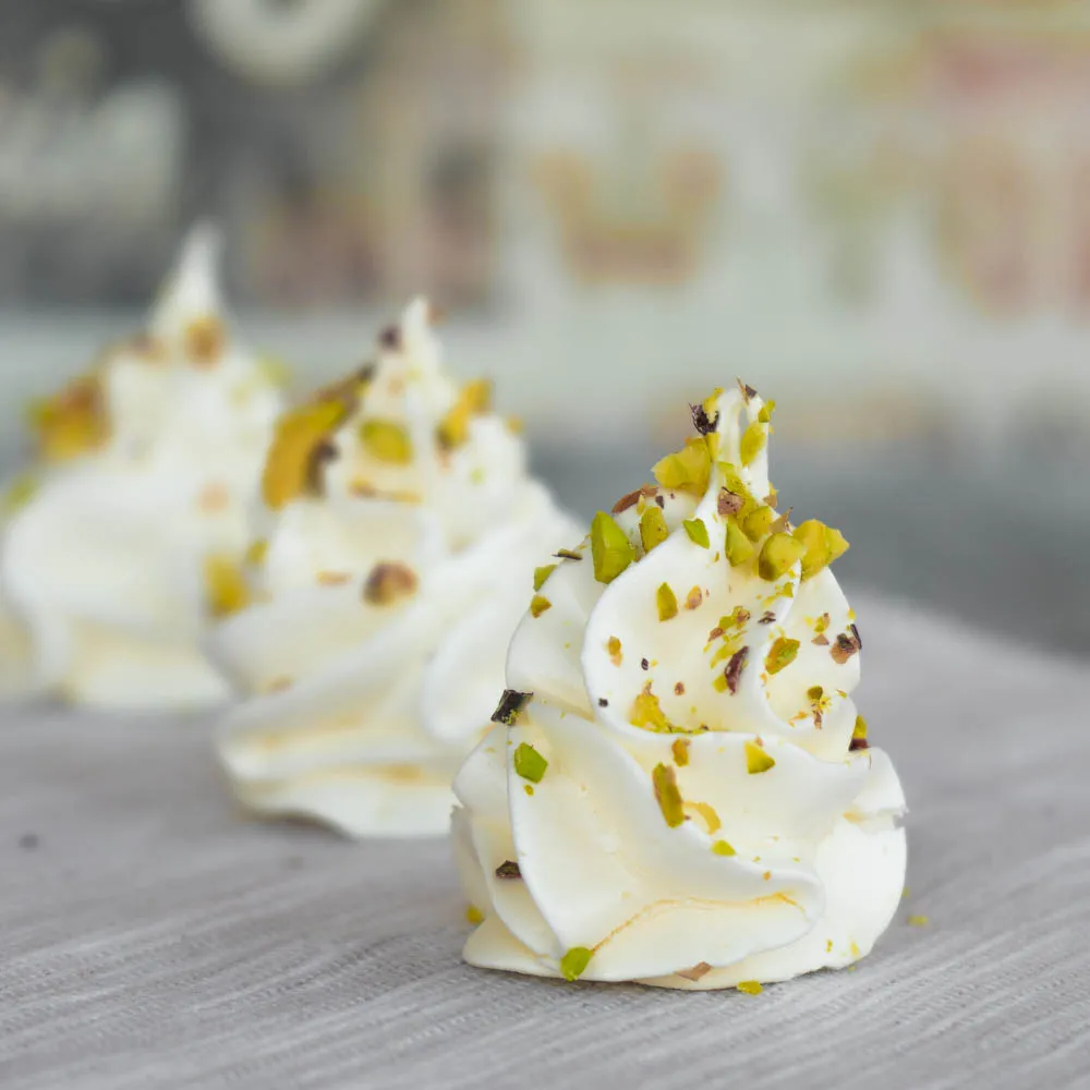 Французская меренга — наверно, самый простой вид меренги — здесь не нужен термометр, и нет опасности сварить белок вкрутую на паровой бане. Один минус — в кондитерском деле её не используют просто так — в составе крема, или как начинку в трубочки. Дело в том, что яйцам нужна дополнительная тепловая обработка — чтобы все соответствовало требованиям безопасности пищевых продуктов. Но если ты делаешь дома, из проверенных яиц и не боишься подцепить какую-нибудь заразу, то этот вид меренги вполне можно использовать без запекания (например, сушить без духовки, а просто на столе, или класть сразу в начинку к десерту).