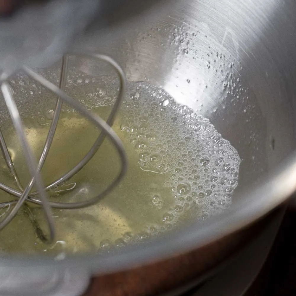 Как понять, что меренга перевзбита? Ее структура перестает быть гладкой и однородной, а становится как бы комковатой — можешь посмотреть на стенки чаши — если по краям есть кусочки белка (прям кусочки, а не полосы от венчика), то значит белки перевзбились, и безе может осесть при выпечке (но это не точно — я видела перевзбитую павлову, и все норм было).