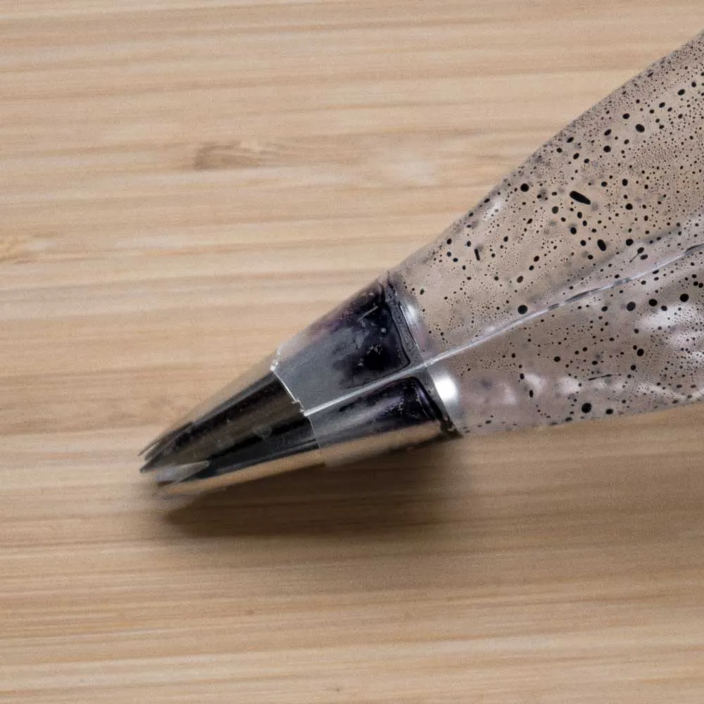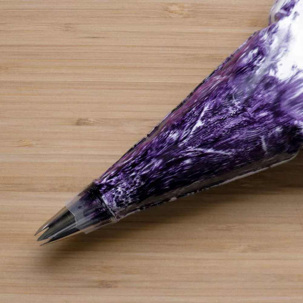 Чтобы получить красивый окрас, как на фото, нужно покрасить чисто пакет — просто проходимся кисточкой по бортикам, и закладываем меренгу. Можно использовать разные цвета, можно покрасить лишь одну сторону, и будет крутой контраст цветного и чисто белого безе.