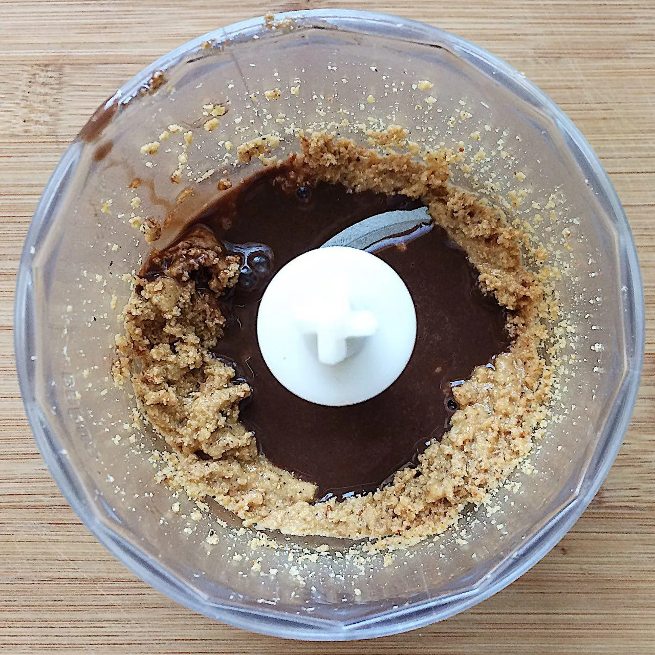 Сначала будет крошка – просто продолжайте молоть, через минуту-две, орехи нагреются от трения, и из них начнет выделяться масло. Чем лучше вы измельчите орехи на этом этапе, тем однороднее будет паста.