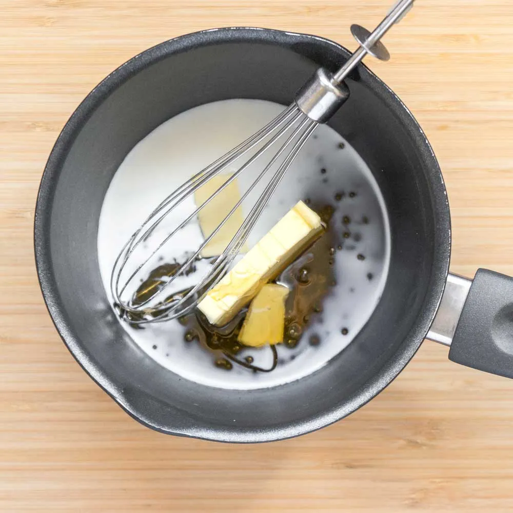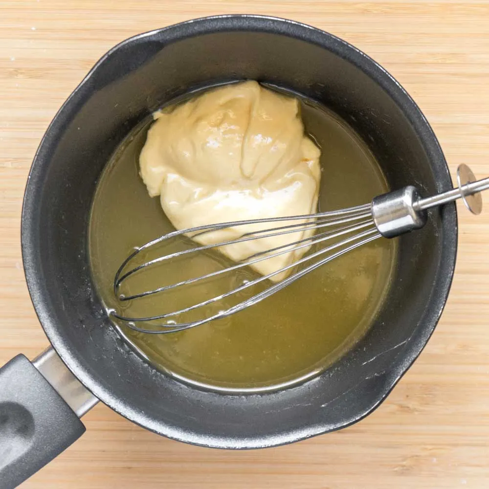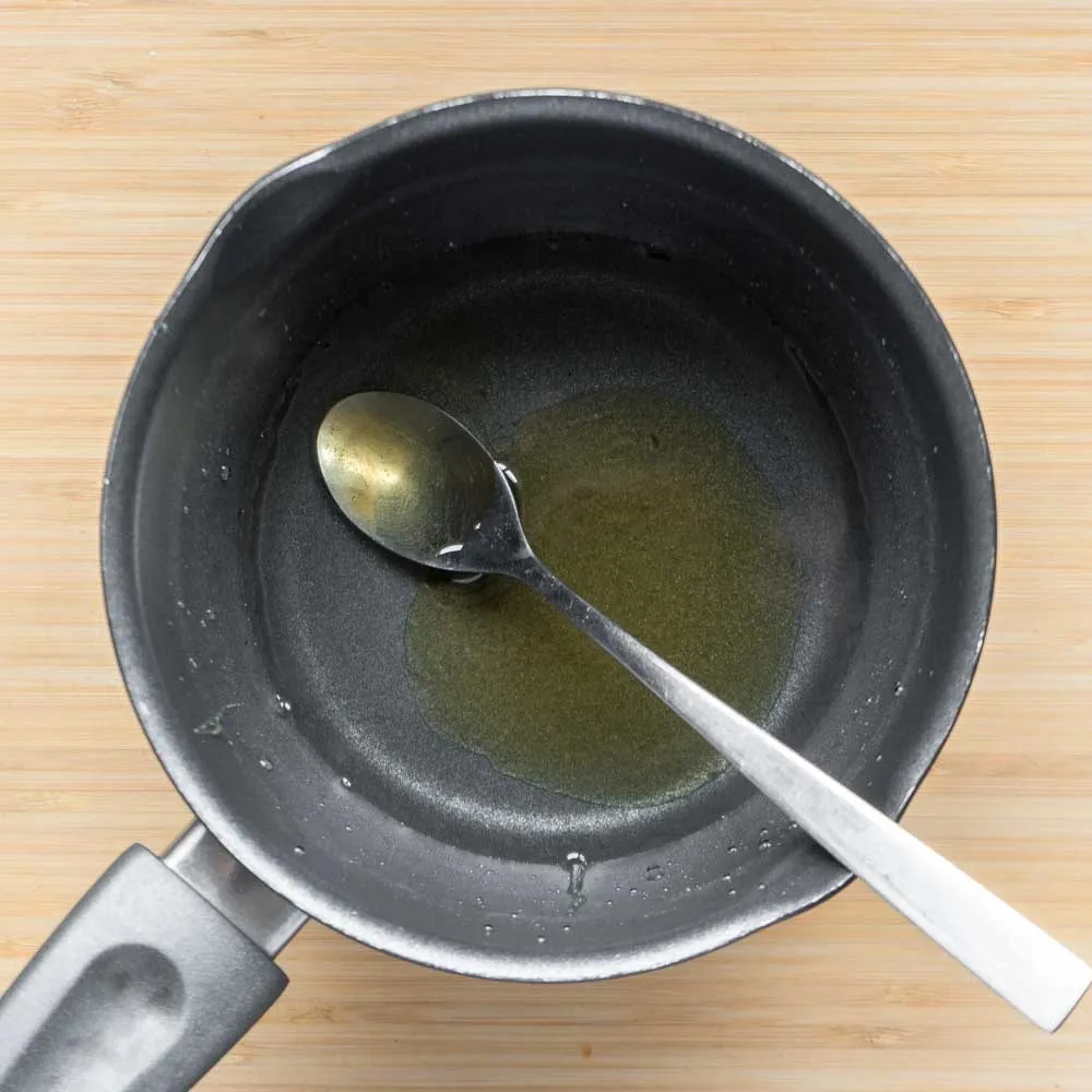 В ковшичке соединяем мед (95 гр.), сливочное масло (30 гр.) и молоко (20 гр.), нагерваем на среднем огне до однородности. Не кипятим. Как только нагрелось — снимаем и оставляем до использования.