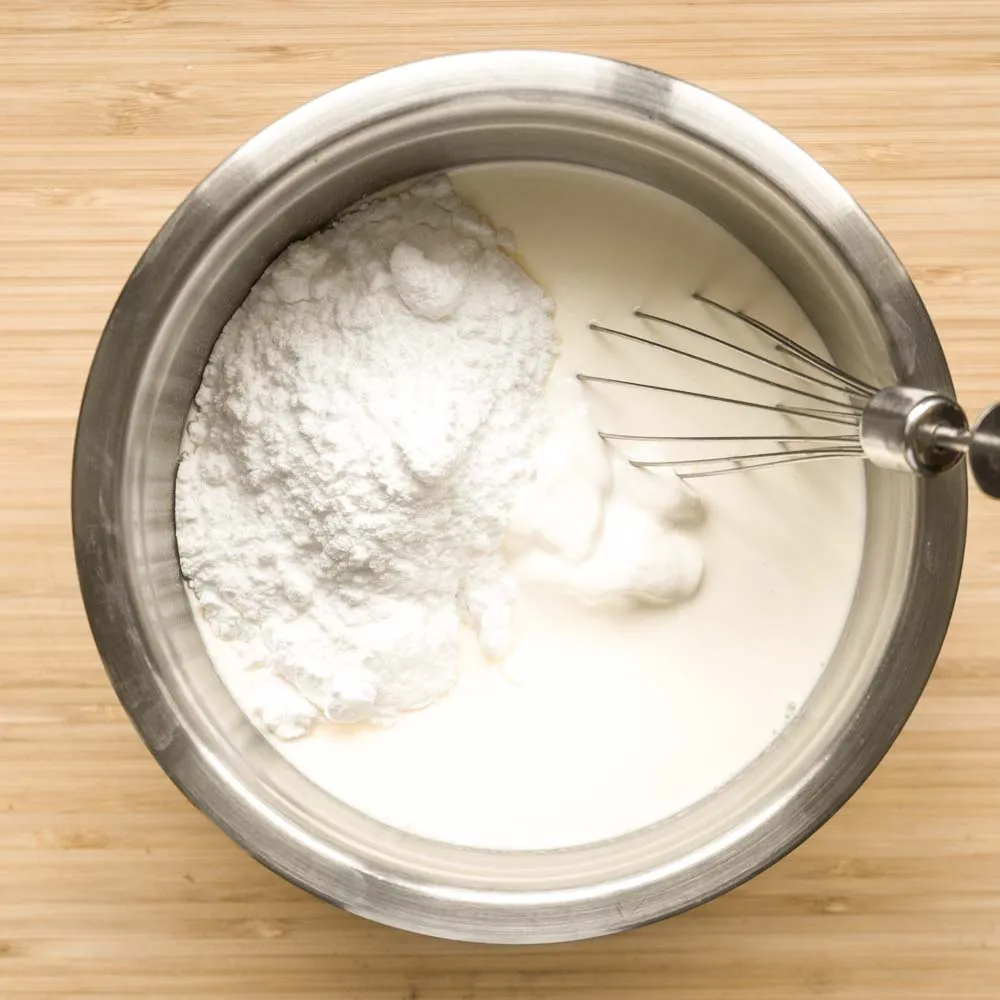 — чаша и венчик должны быть сухими и чистыми, без следов жира. Можно протереть спиртом — желток не должен попасть в смесь. Поэтому каждый белок сначала отделяем в чистую кружечку, а потом — в общую миску.На средней скорости (4 из 7) взбиваем белки (4 шт) с щепоткой соли (или лимонной кислотой/винным камнем на кончике ножа) до момента, пока вся масса не превратится в пузырьки (прозрачные чаши рулят!). На это уйдет минуты 3-4.