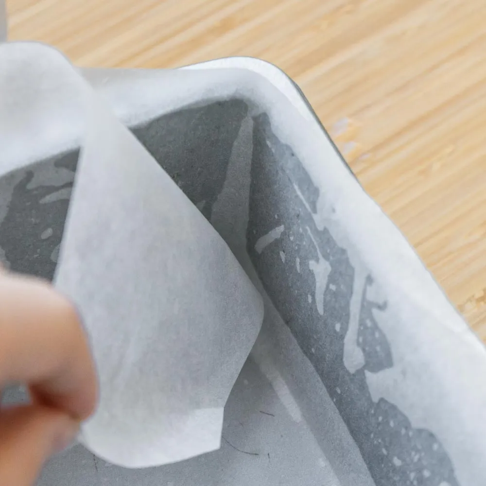 Конечно, можно просто впихать бумагу для выпечки в форму как попало, и получится настоящий хенд-мейд с волнистыми краями и завитушками, а можно сделать аккуратные красивые уголки и ровные стеночки. Выглядит как-то профессиональнее, что-ли…