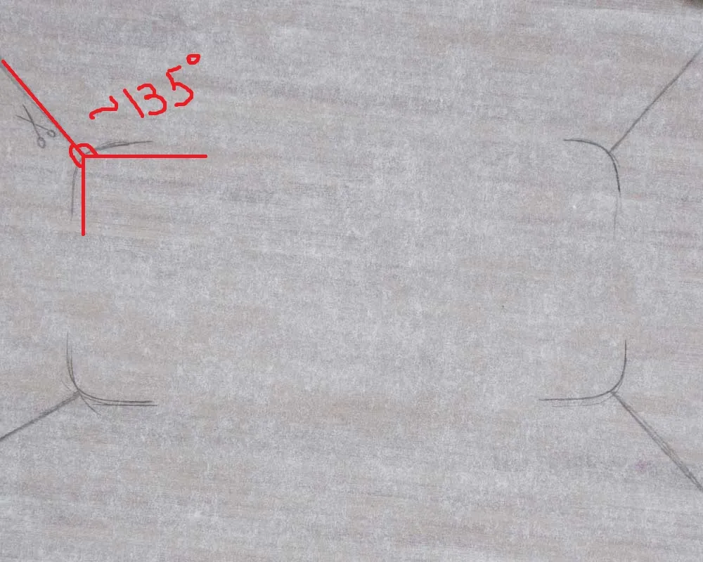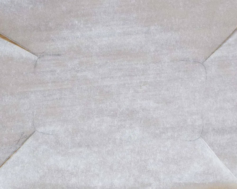 Там, где уголки нахлестываются друг на друга, нижний слой бумаги тоже смажь маслом, чтобы зафиксировать верхний.