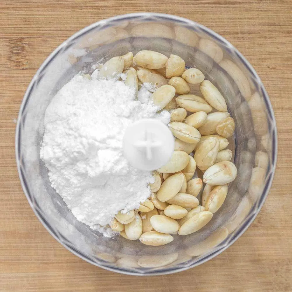 От нагрева орехи начинают выделять масло, и сахарная пудра нужна, чтобы впитывать масло, не давая смеси превратиться в пасту.