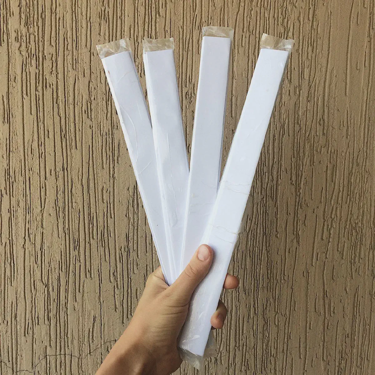 Далее — если у тебя все еще нет направляющих плашечек, делаем) На 1 шт. в ∼3мм. толщиной берем 4 листа А4 обычной бумаги для принтера. Сворачиваем каждый лист трижды пополам по короткой стороне — длина плашечки = длине длинной стороны А4 (297 мм). Затем складываем их друг на дружку гармошкой, и обматываем скотчем.