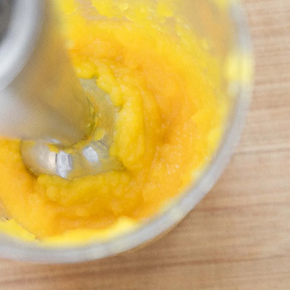 Отжатую тыкву хорошенько измельчаем блендером до гладкого однородного пюре. Через сито ты вряд ли его протрешь.