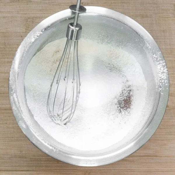 В отдельную миску просеиваем муку (150гр), соду (5гр), разрыхлитель (5гр), пряности для тыквенного пирога (1ч.л.) и молотые орехи (35гр.). Все хорошенько перемешиваем.