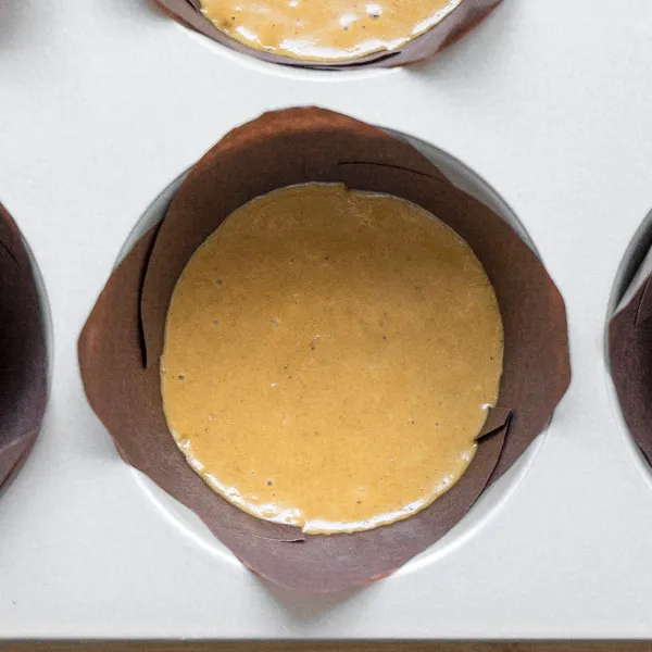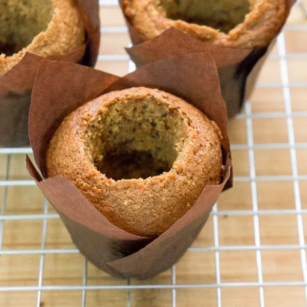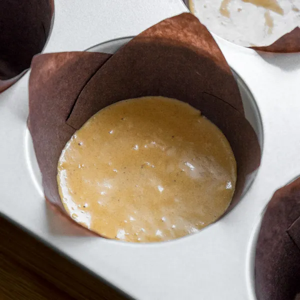 Ставим в духовку, выпекаем до сухой зубочистки. В мои большие формы я брала ∼170гр. теста на 1шт, и выпекала 35 минут.