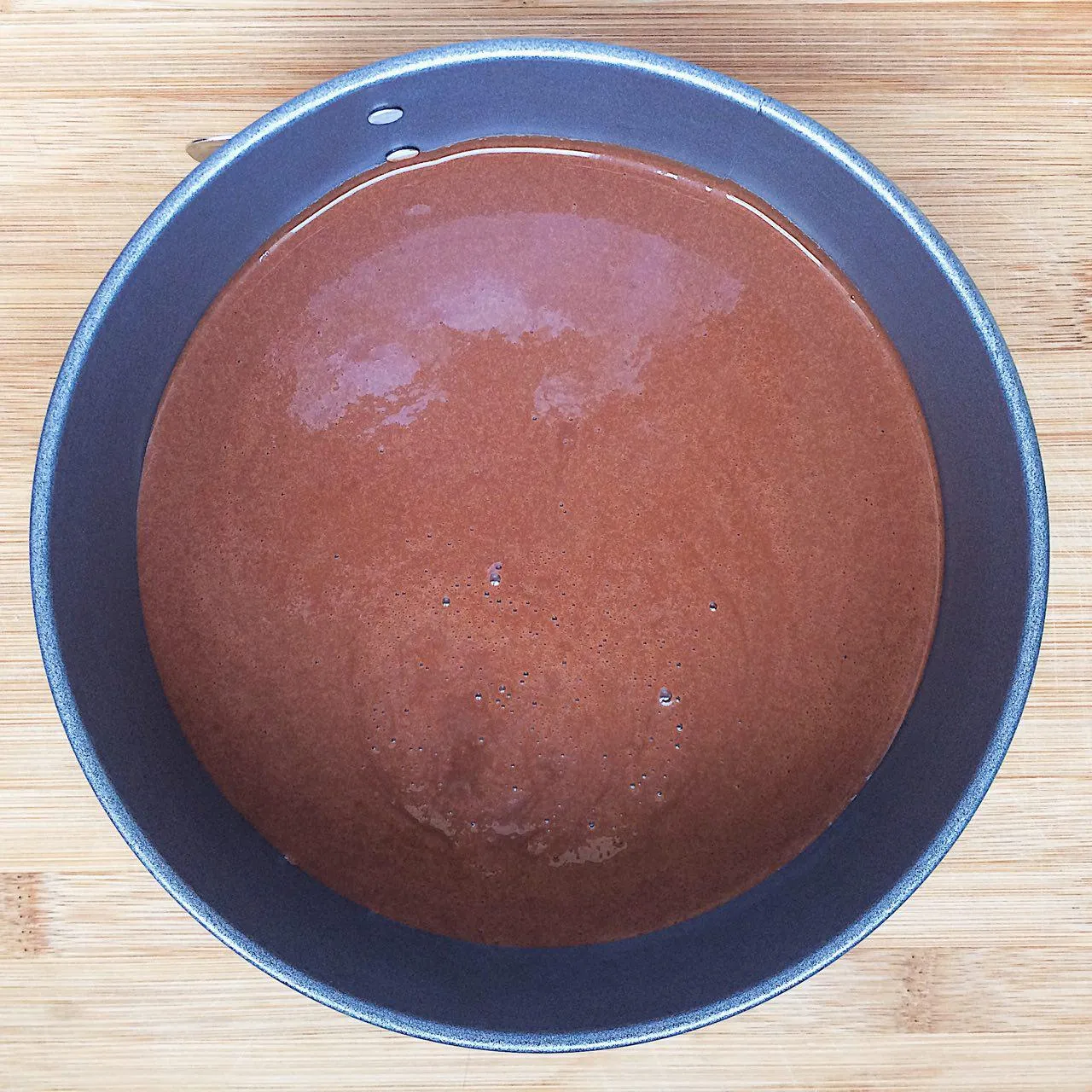 Тесто жидкое — если в форме большие щели (разъемная), то может потечь. В таком случае оберните низ фольгой, или поставьте форму на противень — вытечет меньше, и не зальет духовку.