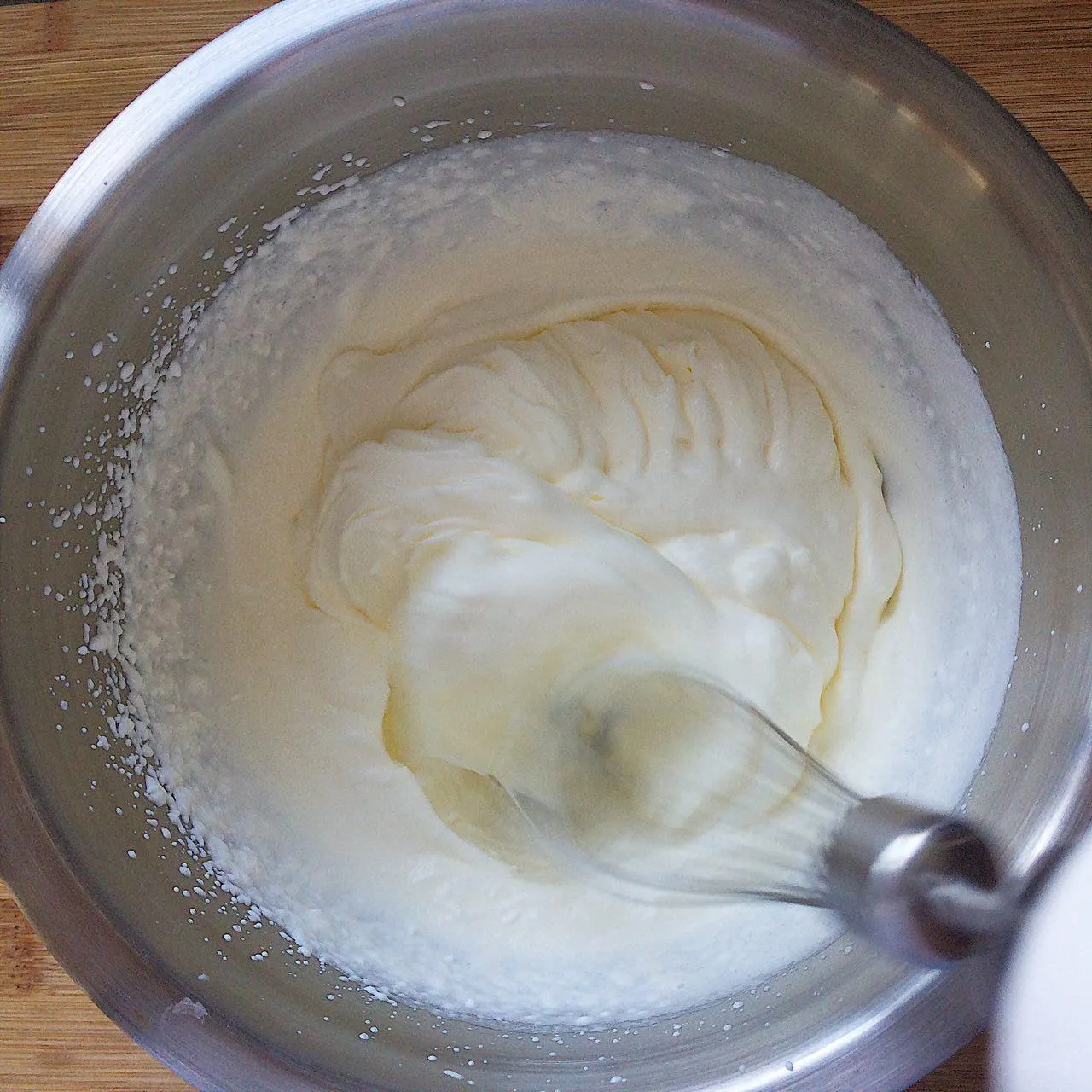 Взбиваем сливки (160 гр). Хорошенько охладите их перед этим. Можно также охладить посуду и венчик. У меня все и без этого взбивается. Перестаем взбивать, как только сливки начали держать форму.