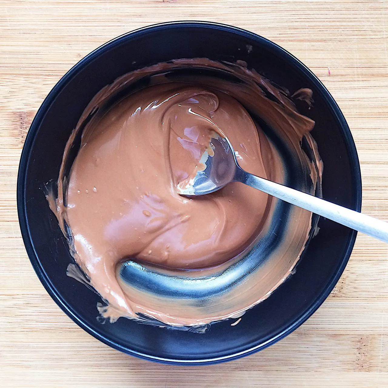 Если будете мыть миску и ложку для растопки - вытирайте их насухо, чтобы вода не попала в шоколад - иначе он свернется (нормальный натуральный шоколад, без странных стабилизаторов).