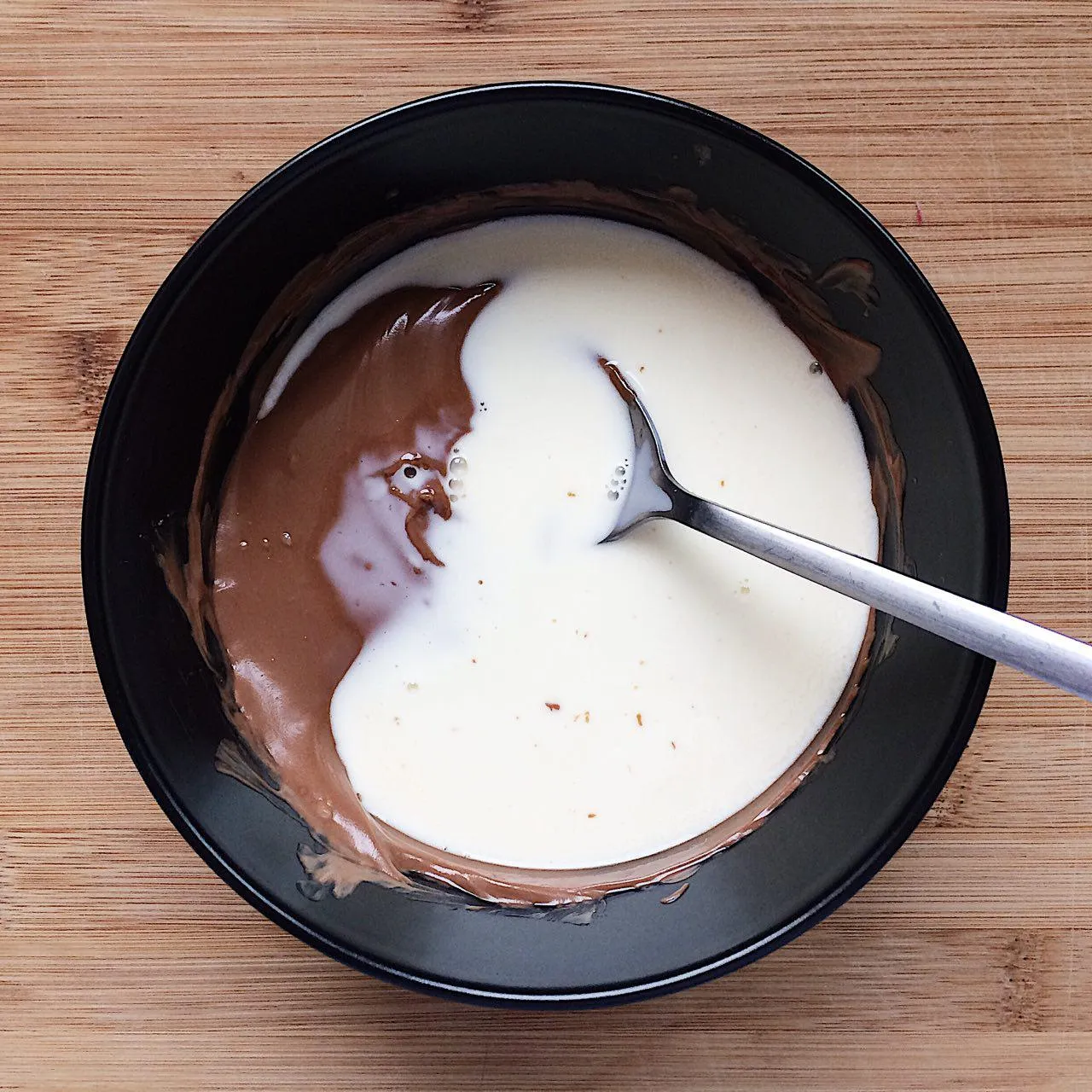 Соединяем сливки с шоколадом. Аккуратно и быстро.