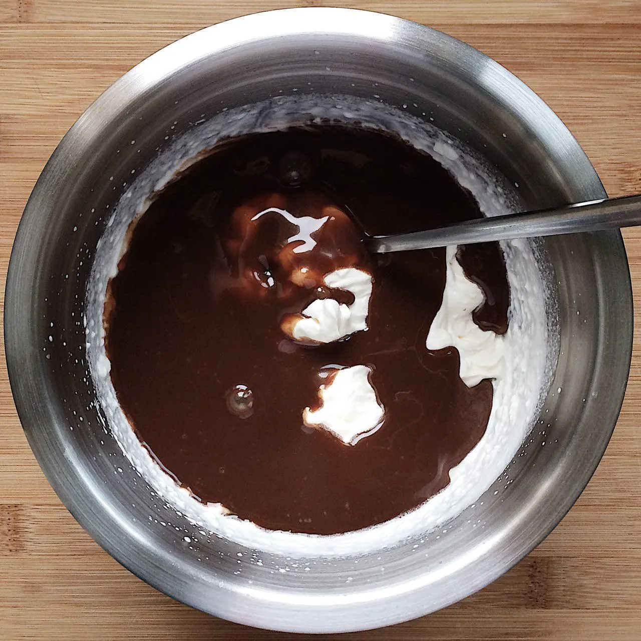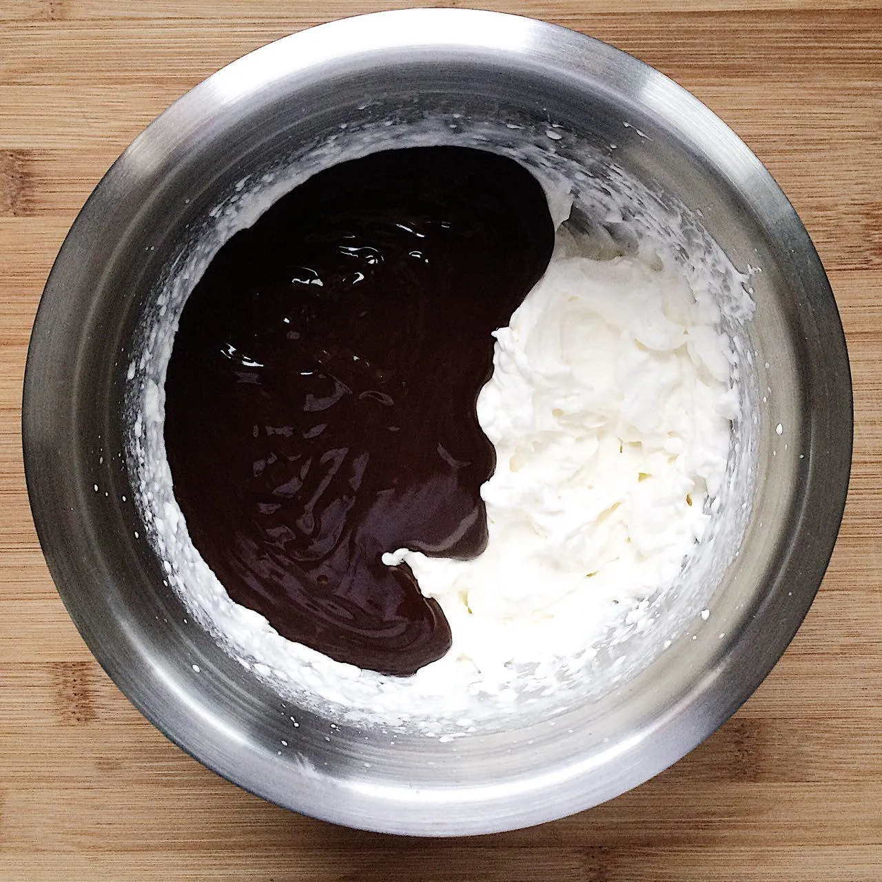 Смешиваем шоколад со взбитыми сливками.